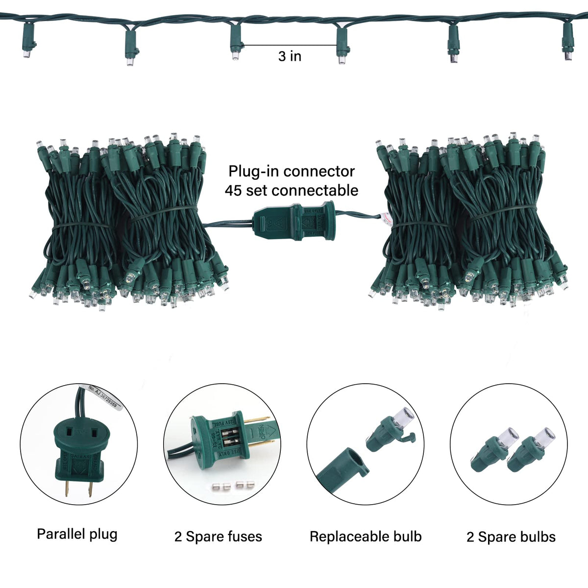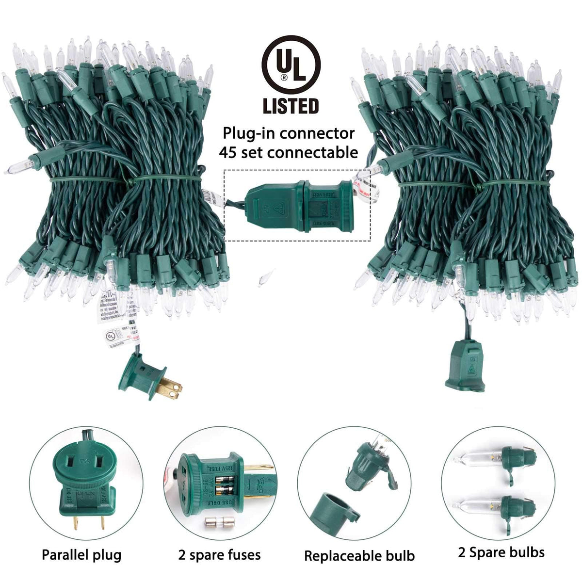 • End Extension: Up to 5 sets of same mini incandescent string lights connectable, which will make you get 125 feet 500 lights to customize your need for large area decorations, creating a grand view of haunting mood. 3 inches tail cord with key designed female connector for speedy connection